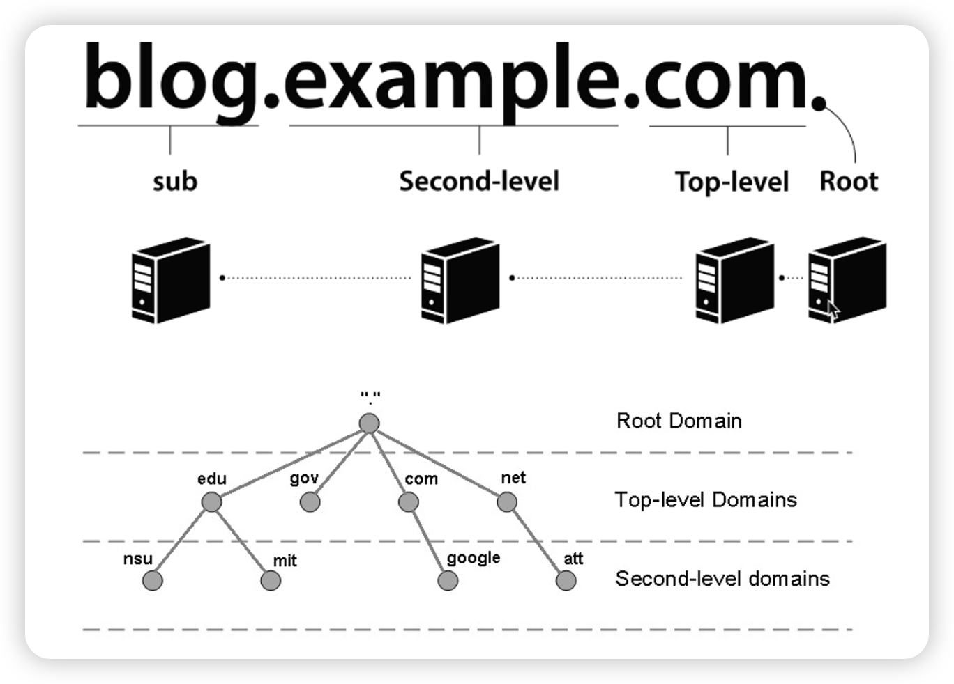- ๊ฐ๊ฐ์ ๋ ๋ฒจ์ ๋ด๋นํ๋ ๋ค์์๋ฒ๊ฐ ์์ผ๋ฉฐ, ๊ฐ ์๋ฒ๋ ๋ฐ๋ก ํ์ ๋ ๋ฒจ ๋๋ฉ์ธ์ ๋ํ ๋ค์์๋ฒ ์ฃผ์ ๋ฐ์ ์์ง ๋ชปํ๋ค.