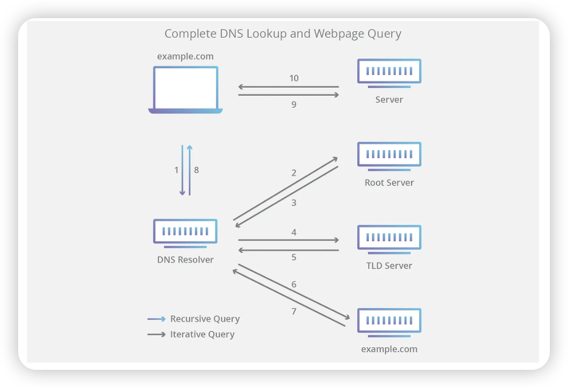 - ์๋ ๊ฒฝ์ฐ Local DNS๊ฐ Root -> TLD -> Sub DNS๊น์ง ์ง์ํด์ค๋ค.